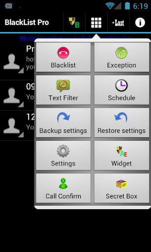 ☆ Blocking scenario (can be set up from app's settings or widget (press HOME/menu/Blacklist/widget)